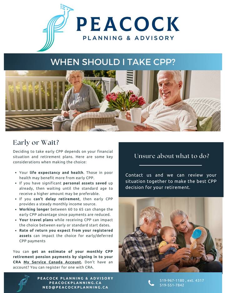 CPP Retirement Pension Benefits - Potential Entitlement (Sun Life) - One-pager Canada Pension Plan Old Age Security When Should I Take Canadian Pension Plan (CPP)? - One-pager